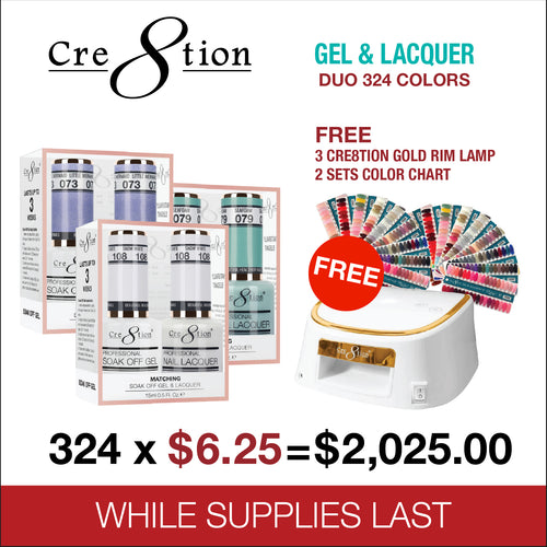 Cre8tion Duo Matching color (Matching Pair) - Full set 324 colors w/ 2 sets Color Chart & 3 Cre8tion White with Gold Rim Lamp