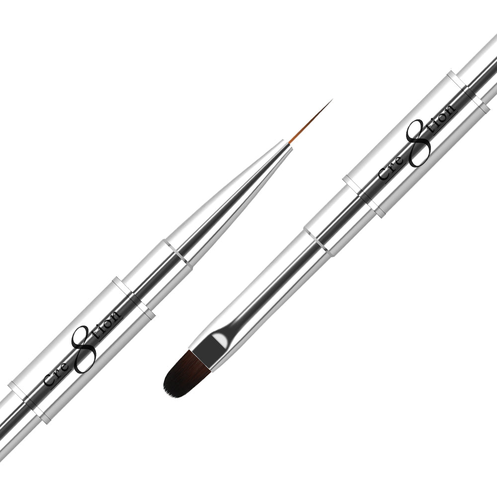 Cre8tion Nail Art Brush is made with fine synthetic bristles; synthetic bristles offer a natural softness with a more precise and streak free application. Our nail art brush series features varying shapes and sizes for intentionally unique expressions. Ensure to use the cap to protect your brush from contaminants and damage when not in use.