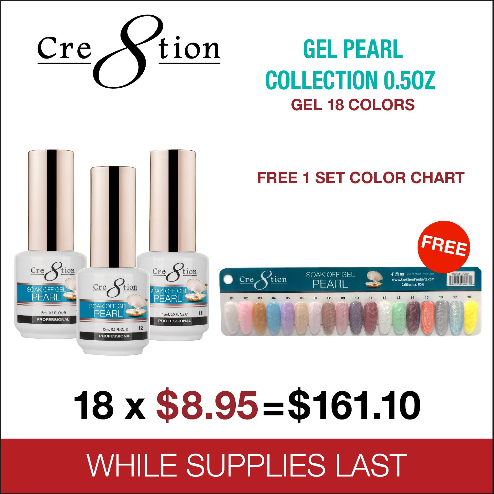 Cre8tion Pearl Soak Off Gel 0.5oz - Full Set 18 colors Free 1 set color chart