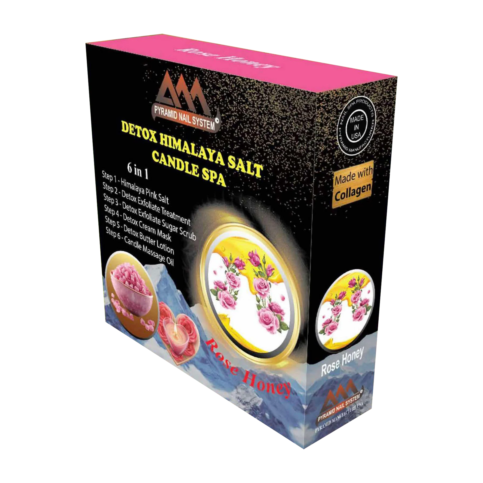 Each single box contains 6-step treatment: Himalaya Pink Salt, Exfoliate Treatment, Sugar Scrub, Mask, Lotion, and Massage Oil. . Formulated with natural extracts and enriched with collagen, this kit helps to cleanse – nourish – rejuvenate – soften your skin. Every use feels like a mini spa session, relaxing your mind while pampering your body.